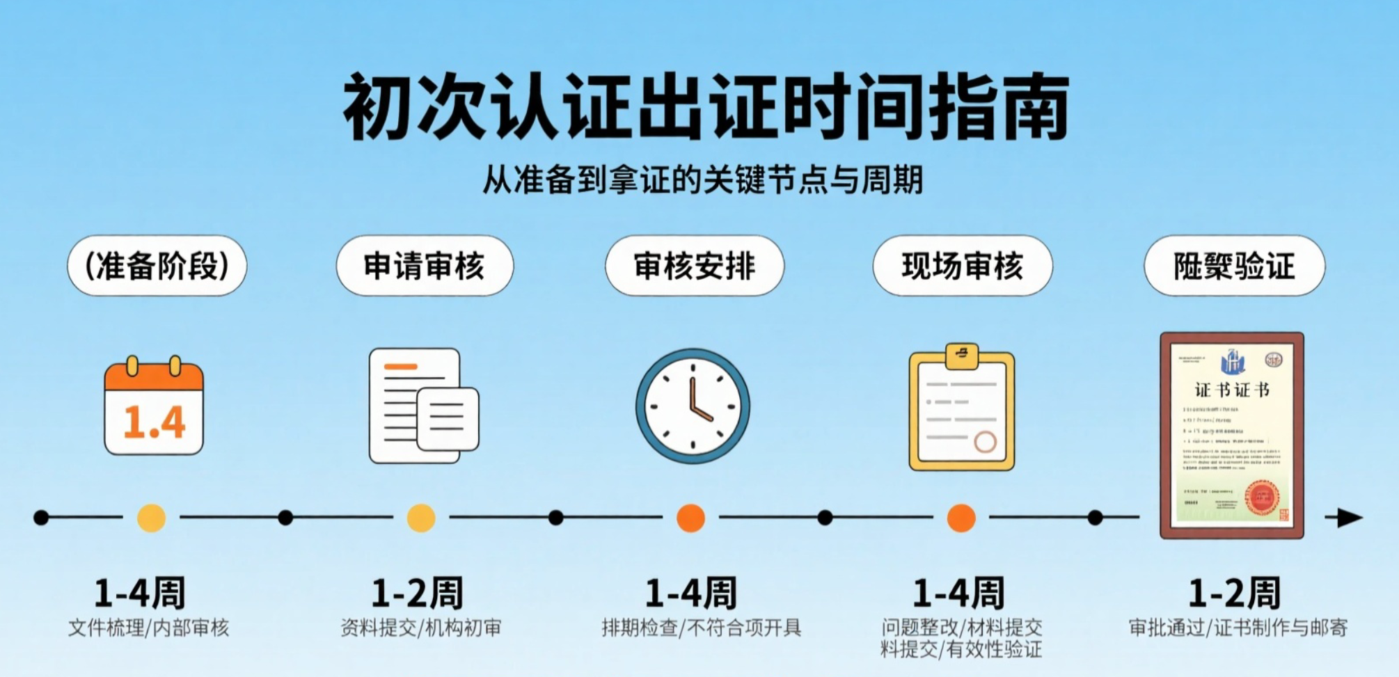 一、初次认证出证周期的核心影响因素1.审核计划上报审核计划需提前 3 天上报认监委系统,机构提前上报任务后,审核组才能及时与企业确认审核计划。虽存在部分操作技巧,但违规风险较高,建议按规提前上报。 2.初次认证审核阶段要求初次认证审核分为第一阶段和第二阶段,核心要求如下: 两阶段审核间隔:最短不少于 5 日(非工作日,信息技术类要求 5 个工作日),最长不超过 6 个月,超期需重新实施第一阶段审核; 实际操作中,部分机构两阶段间隔较短,可能存在审核不规范的情况。 3.第一阶段审核实施规范实施方式:原则上需在认证委托人现场实施,仅两种特殊情况可非现场(已获本机构其他领域有效认证且了解其 QMS;获其他认可机构颁发的有效 QMS 认证证书,可通过文件审核达成审核目的),且需记录非现场理由; 重点提示:销售领域需进行现场第一阶段审核,机构通常不主动安排非现场(非现场审核不计入现场审核人日,但需支付组长费、审核费); 结论告知:认证机构需书面告知企业是否具备第二阶段审核条件,包括可能判定为不符合的问题,告知需以审核报告为依据,且需企业签字确认。 4.第二阶段审核要求核心目的是评价认证委托人 QMS(质量管理体系)的实施情况,包括对 GB/T 19001/ISO 9001 标准要求的符合性和体系有效性;审核过程中通常会发现 1-2 个不符合项,整改需 1-2 天。 5.认证决定流程认证决定需基于审核报告、不符合项纠正措施及验证情况等信息进行复核与综合评价; 认证决定人员需为机构专职人员,且不得为审核组成员,需具备相应资质; 报告提交后不会当天出证,通常存在 1-2 天的间隔。 6.机构人员储备机构专职人员数量、专业审核员及技术专家的排组效率,直接影响出证速度。在合规无风险的前提下,人员储备越充足,出证越快。 二、认证全流程风险管控培训内容