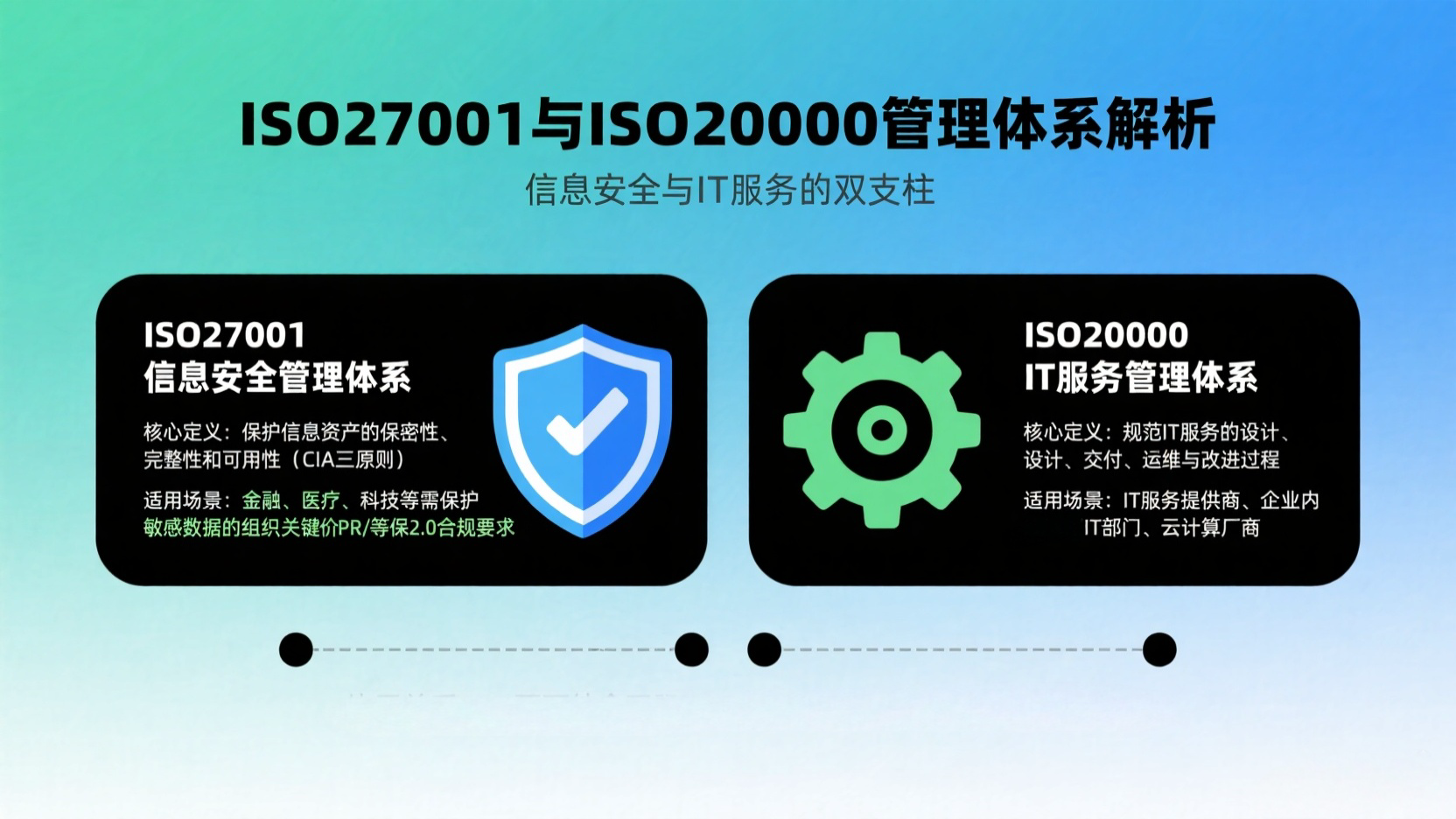 | 数字化时代,企业对 IT 服务质量与信息安全的需求日益迫切。ISO27001(信息安全管理)与 ISO20000(IT 服务管理)作为两大核心国际标准,虽聚焦不同但互补性极强。